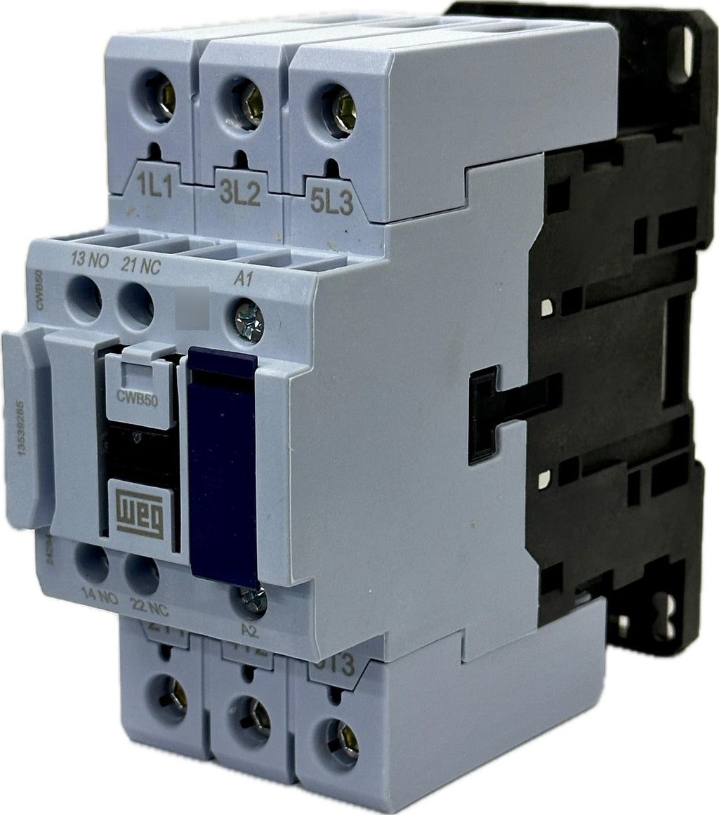 Resumo das características técnicas Corrente nominal 50 A Referência CWB Contato principal 3 NA Tensão de comando 220V 50/60Hz Tipo de terminal Parafuso