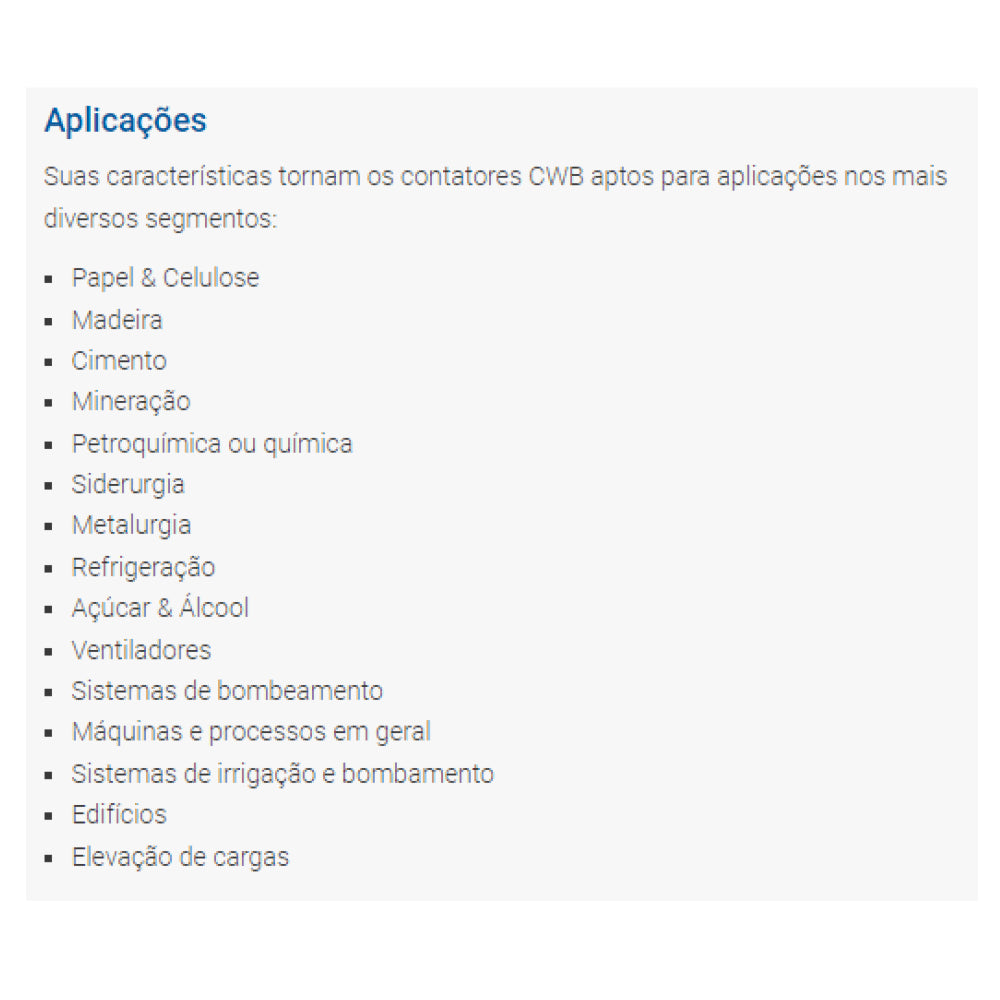 O Contator CWB91130D23 é um dispositivo confiável e eficiente para acionar cargas elétricas de forma segura e precisa. Seu design de três pólos permite uma passagem de correntes de até 9A em corrente alternada, e seu sistema de um contato normalmente aberto e outro normalmente fechado garante a integridade do circuito de operação. Além disso, sua tensão nominal de 220VCA e frequência de 50/60Hz permitem que ele possa ser usado em diferentes aplicações, tornando-o uma solução versátil e adaptável às suas necessidades. O Contator CWB91130D23 é um produto de alta qualidade da marca WEG DRIVES CONTROLS E AUTOMAÇÃO. Ele segue as normas de segurança elétrica e possui um sistema de fixação e encaixes que facilitam a instalação em quadros elétricos. Seu modelo CWB garante um desempenho suave e preciso, além de ter uma longa vida útil. Este contator é indicado principalmente para acionar motores elétricos, pois é capaz de comandar tanto a partida quanto a parada, mas ele também pode ser utilizado em outras aplicações que necessitem de cargas de cargas. Além disso, suas características permitem que ele possa ser usado em diversos tipos de instalações, como em quadros de distribuição de energia, painéis de controle elétrico e máquinas industriais. Com o Contator CWB91130D23 você terá a segurança e a qualidade que sua operação precisa, garantindo um atendimento preciso e confiável mesmo em condições adversas e garantindo seu bom funcionamento. Adquira já o seu e tenha a garantia de contar com um dispositivo de alta qualidade e desempenho.